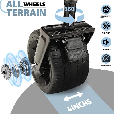 - ¡¾7¡± All-Terrain Wheels + Brakes¡¿¦µ7¡± puncture-proof wheels with anti-slip treads conquer grass, gravel, or mud. Built-in brakes ensure control on slopes.