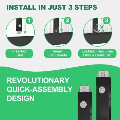 - All Season Versatility and Quick Setup Structure: Designed for backyard use, this greenhouse is ideal for growing a variety of vegetables, plants, and herbs, offering ample space for gardening activities. It features a simple design with a quick installation system and plug-in panels. After more than 500 tests, the structure has been optimized to increase installation speed by 40% and enhance stability by 35%. This greenhouse kit simplifies assembly with innovative design and ease of use.