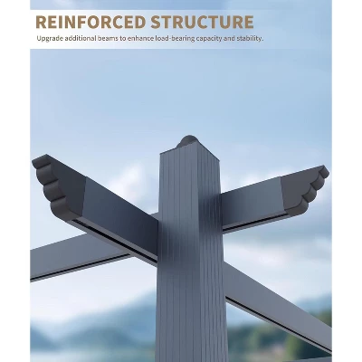 Acekool’s Aluminum Pergola transforms any outdoor area into a stylish, reliable haven. Crafted with a realistic wood-grain or elegant gray finish, the powder-coated aluminum frame delivers classic aesthetics with the strength to resist rust, fading, and weathering. No rotting, no splinters—just long-lasting beauty and stability you can trust.Engineered for year-round enjoyment, the structure features 1mm reinforced walls for industrial-level strength. The innovative four-sided anchoring system keeps the pergola anchored and secure, even in windy or variable conditions.Retractable fabric covers (available in multiple colors) let you easily adjust sun and shade. Its versatile, adaptable design suits barbecues, casual family dinners, outdoor parties, or quiet relaxation, blending seamlessly with any garden or patio style. All parts are pre-labeled, and detailed assembly instructions ensure your pergola is set up quickly, so you spend less time building and more time unwinding.Choose from multiple color combinations and sizes—10×10 ft or 10×13 ft—to perfectly fit your needs and personalize your backyard oasis. With both wood grain and classic gray pillar options, plus a range of curtain colors, you can create a look that’s truly your own.