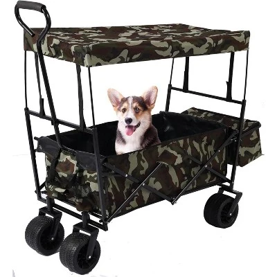 - 【Removable Canopy for Sun and Rain Protection】The included canopy provides shelter from the sun and rain, helping protect pets, kids, or essential items during trips. The canopy is easy to assemble or remove, making the wagon adaptable for different weather conditions and loads.