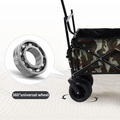 - 【7″ All-Terrain Wheels and 360° Rotation】Equipped with four oversized 7-inch wheels that rotate 360 degrees, this wagon moves smoothly over sand, grass, gravel, or pavement. The flexible turning lets you navigate rough terrain, beaches, gardens, or outdoor fields with less effort.