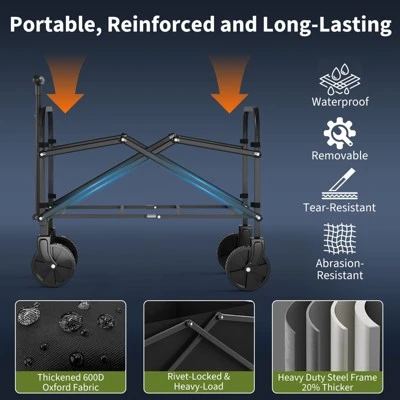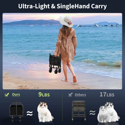 - 【Quick Fold, Easy Storage】Weighing just 12 lb, this wagon offers quick folding for compact storage in car trunks, closets, or garages. Take it out and set it up in seconds for family outings, sports practices, or shopping trips, then fold it down when you’re ready to head home.