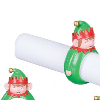 Brighten up holiday dinner decor with this fun Elf Napkin Ring Set. These vibrantly green and red painted resin rings feature a delightful elf dressed in a festive red and green outfit, with an adorable hat that’s topped with a jingle bell. Get your holiday cheer on with these playful napkin rings.