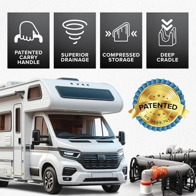 Make RV waste management easier than ever with the Camco Sidewinder 20-Foot RV Sewer Hose Support, a patented, out of the box ready camper essential designed for smooth and sanitary dumping. Whether you’re a full-time RVer, weekend warrior, or road trip adventurer, this durable hose support delivers secure, mess-free black tank drainage every time.Engineered for superior gravity flow, the Sidewinder lifts and guides your RV sewer hose into the ideal downward slope, even around obstacles. Its flexible design helps prevent clogs and blockages, keeping your waste line moving. The deep cradle structure holds your hose securely without straps or clamps, so you never have to worry about slippage or your sewer hose creeping shut during use.Perfectly sized to fit a 20 foot, 3 inch diameter RV hose, this product folds compactly for travel and storage, making it a space-saving solution for camping and travel trailer life. The telescoping structure easily expands when needed and collapses quickly when you’re packing up. A built-in handle ensures easy transport from site to site with no tools or complicated setup required.Made from strong, weather-resistant plastic, the Sidewinder stands up to the elements and rugged use. It’s the ideal blend of form and function, giving your camper sewer hose the reliable support it needs while elevating your camping accessories game.Whether you’re managing black tank flow at a full-service hookup or boondocking in the wild, the Camco Sidewinder is your go-to solution. This is more than just an RV accessory, it’s a must-have in your hose and sewer management kit, from the brand RVers trust. Proudly from Camco, your go-to for quality RV accessories and home improvement solutions.