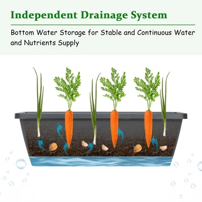 This ideal freestanding garden planter occupies only a small space so as to match up with indoor/outdoor furniture perfectly. As for a better cultivation of plants, the drainage system is deigned scientifically and independently. Bottom water storage ensures adequate and stable water supply for your plants. Now, establish your flourishing garden with a variety of vegetable seeds, herbs, blossoming flowers, tropical plants and so on!