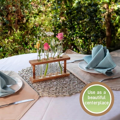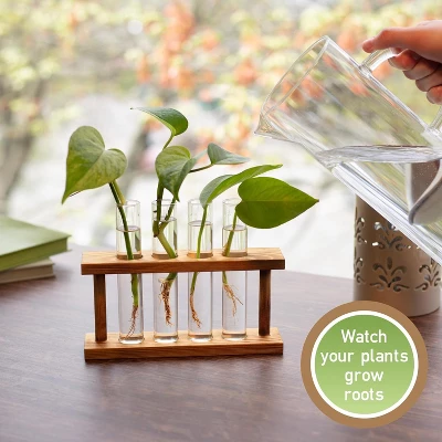 - D’Eco Glass Propagation Station. Set of 4 Tubes and Wood Vase Holder Station.