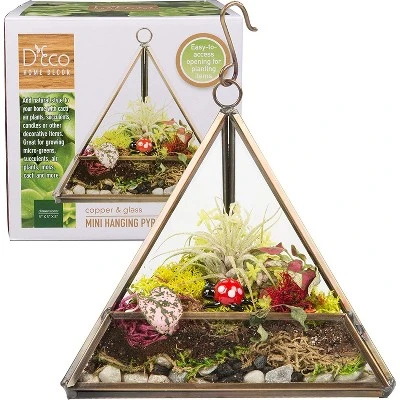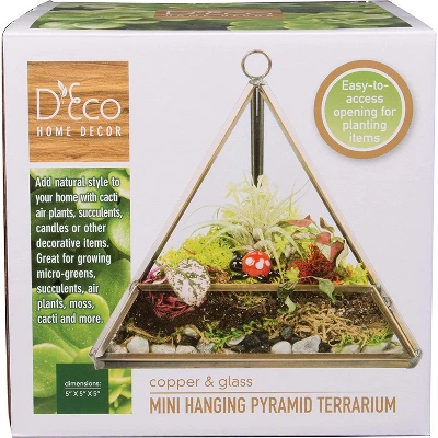 - D’Eco Glass Mini Triangle Plant Terrarium with Copper Accents. Measures 5 x 5 x 5” fully assembled