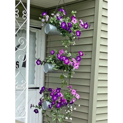 - PRODUCT DETAILS: Gardeners Supply Galvanized Hanging Triple Planter A stylish and practical solution for adding greenery to your space. Crafted from durable galvanized metal, this triple planter offers a unique way to showcase your favorite plants and flowers while maximizing vertical space.