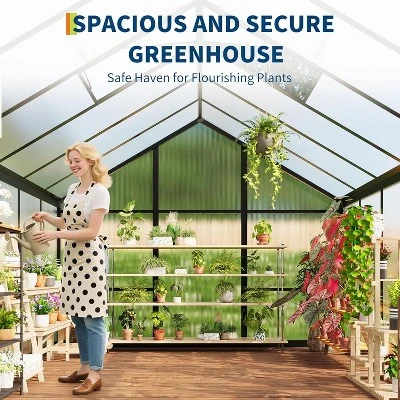 This Sturdy Outdoor Greenhouse Kit Features Quick Slide-In Panel Assembly, Durable Polycarbonate And Aluminum Construction, Efficient Water Guttering, Adjustable Ventilation For Optimal Plant Health, And 24/7 Dedicated Customer Support For A Seamless Gardening Experience.