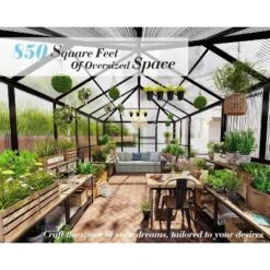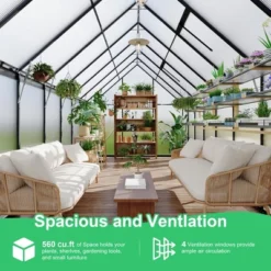 AMERLIFE 14×9.5×9 FT Polycarbonate Greenhouse, Aluminum Frame, Double Doors, 2 Vents, Rain Gutter