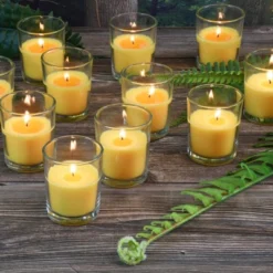 LumaBase Citronella Votive Candles In Clear Glass Holders – Set Of 12