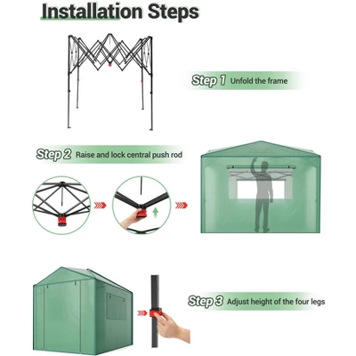 Equipped with a specially designed steel support pole, this greenhouse offers extra structural reinforcement against windy conditions. The powder-coated steel frame delivers reliable rigidity, while the PE cover features a reinforced woven grid for added tear resistance, ensuring a shelter that stands up to rain, snow, and harsh UV rays.