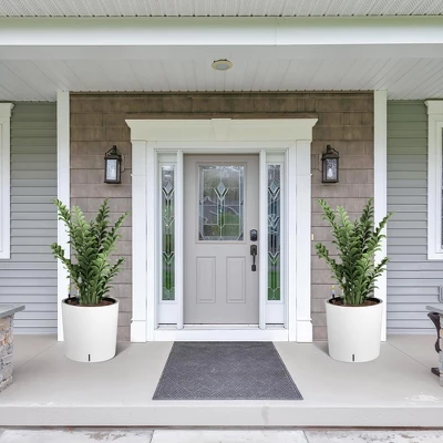 This set includes two planters. These self-watering planters are extremely durable, the outer planter creates a barrier to the inner planter, which prevents the soil from overheating in the summer and reduces heat loss in the winter, standing up to any weather and ensuring that your outdoor space stays vibrant and beautiful throughout the seasons. The self-watering planter is designed with a hidden storage tank, which effectively stores water to meet the needs of your plants and enhance the overall aesthetics of the planter while maintaining a neat appearance. The self-watering planter can realize even and continuous water supply, which is especially suitable for those plants that prefer a relatively moist environment, avoiding problems such as plant rot caused by improper watering. The visual water level design of the planter allows you to easily check the water levels to ensure they stay within the optimal range and allows for quick replenishment – saving you up to two weeks of watering time. Solves the problem of overwatering and replenishment time, suitable for first time growers or less experienced growers, ideal for modern gardening.