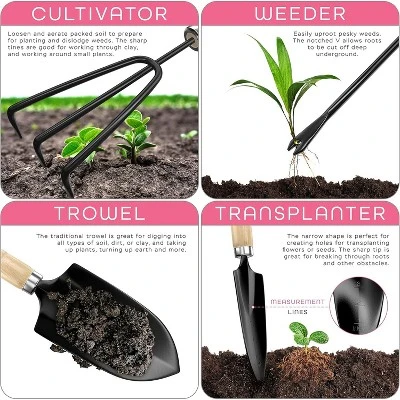 - Heavy-duty stainless steel garden tools for durability and strength.