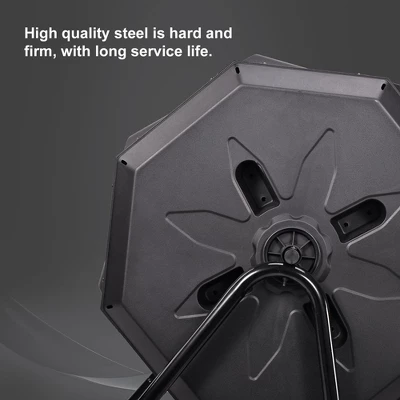 Swtroom Outdoor Plastic Dual Chamber Composter Bin revolutionizes home composting with its innovative 360-degree tumbling design and dual-chamber system. This high-efficiency composter features two separate chambers that allow continuous composting – while one side cures into nutrient-rich compost, the other side can be filled with fresh organic waste. The rotating barrel design with deep interior fins eliminates manual turning, making compost aeration effortless while breaking up clumps for optimal oxygen circulation. Constructed with a corrosion-resistant metal frame and durable PP plastic body, this composter withstands all weather conditions for year-round outdoor use. Multiple ventilation holes ensure proper airflow to accelerate decomposition without creating dangerous pressure buildup. Perfect for gardeners and eco-conscious households, this composter transforms kitchen scraps and yard waste into valuable fertilizer while reducing landfill contributions.