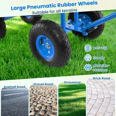 - 【Portable Design & Easy Movement】Featuring 4 pneumatic rubber wheels with deep tread patterns, this garden scooter enhances traction and stability, suitable for various terrain. The handle can be extended from 17.5″ to 31″, which relocates the garden rolling seat to anywhere you need with ease. What’s more, the angle of handle can be adjusted for premium comfort.