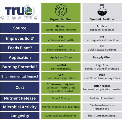 - Unlike conventional fertilizers, True Organic products replenish the soil, helping to restore the Earth for future generations and keeping your own backyard biome truly organic