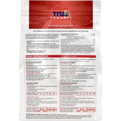 Gives your tomatoes the super powers to produce large, delicious fruits and it’s excellent for growing your favorite fragrant herbs Use True Organic Liquid Tomato and Vegetable Plant Food in garden beds and containers to help grow superior harvests of organic fruits and vegetables for your family table. TRUE Organic Tomato and Vegetable Food is blended from farm-grade ingredients used to make fertilizers for Americas organic produce growers and proven to be extremely beneficial for both plants and soil. 4-5-6 formula provides the perfect start for your sprightly spring veggies and greens, it gives your tomatoes the super powers to produce large, delicious fruits and it is excellent for growing your favorite fragrant herbs.