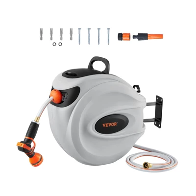 Wall-mount & 180° Coverage: Our retractable water hose reel features a 180° metal bracket, flexible enough for multi-directional watering. You can use the installation kit to quickly fix it to brick, concrete, wood, and stone surfaces. And it is also easy to remove and store in freeze-proof places. Mount where you want and spray how you like.