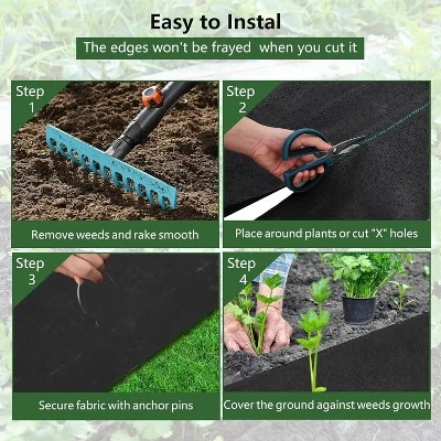 Product DescriptionThe weed barrier is made of heavy-duty PP Material, it’s unique dual-layer design stops weeds in their tracks while letting water and nutrients reach the soil. It promotes healthy air flow and locks in nutrition—so your plants can breathe and thrive.